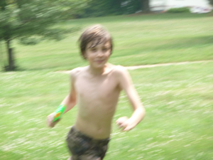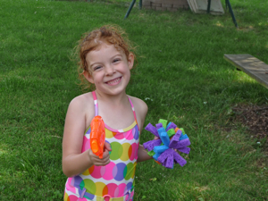 By then I had forgotten all about my to-do list. After all, it was hot, and there were sponge bombs to make. So we made them (with some help from Bri who was home after a weird bug that hit him the night before), and the two littles ran outside to cool off on this hot day.