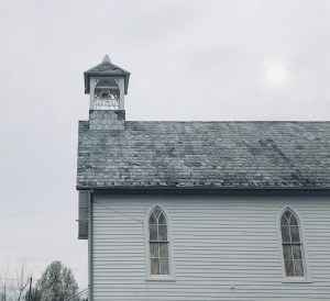 Here is a picture thought I am sharing… Taken on a walk with Bella girl. I love stained glass and steeples.